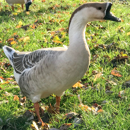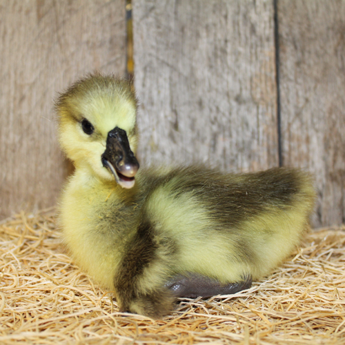 Brown African Geese are large, have a knob on the head and the same unique gray color pattern of the Brown Chinese. For many years, because of the similarity of color patterns, Brown Africans and Brown Chinese have been sold as the same breed. Toulouse goslings have a “U” at the top of the bill while Africans and Chinese have an arch. The Africans that Ideal sells do not have dewlaps and are only available from February through June.