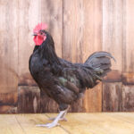 Black Australorp is an abbreviation of the name Australian Black Orpington. They were developed in Australia from Black Orpingtons with an emphasis on egg production. Black Australorp chick are primarily black with white wing tips, chest and abdomen. They have single combs and clean, white and black legs and feet. Adults have solid black plumage with a notable green sheen that is more pronounced in the sunlight. Like most black varieties, they may have some white in the wing tips before they reach maturity.