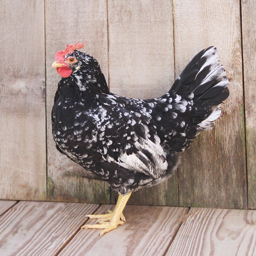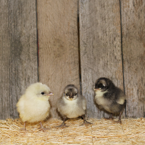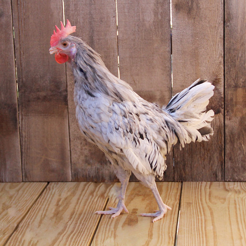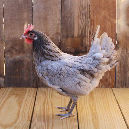 Blue Andalusians are one of the oldest Mediterranean breeds and were named after the Providence of Andalusia in Spain. They were developed from black Spanish stock and later both Minorcas and Black Spanish were used for further breed development. Blue Andalusian chicks come in three colors: black, blue and white with blue cast. They have bluish slate wing tips, clean, slaty blue legs and feet, and single combs. Adult plumage is primarily bluish slate laced with black. Adult males have a black head while the females head is bluish slate.