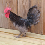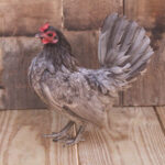 Old English bantams were developed in England many years ago presumably from the common crossbred bantams of the countryside. Blue Old English bantam chicks are three colors: white with blue cast, blue and black. They have single combs and clean, gray to black legs and feet. The adult plumage is primarily bluish slate laced with black. The males head is glossy black while the female’s head is bluish slate.