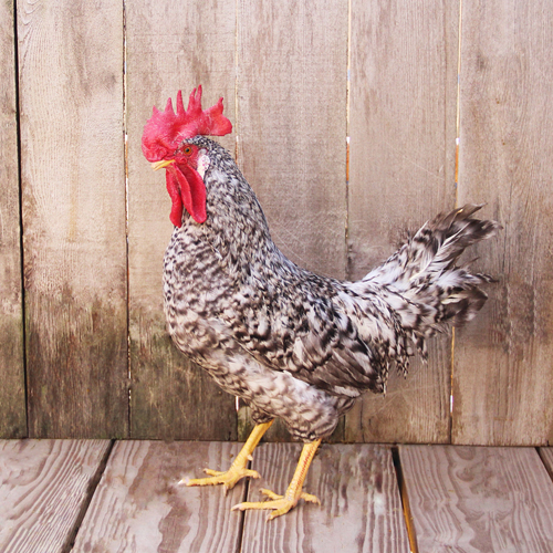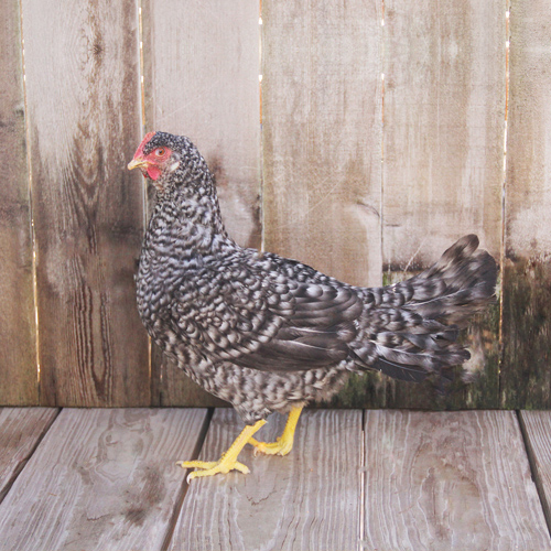 Like the Ideal 236, California Grays are a productive white egg layer that was originally developed at Ideal Poultry Breeding Farms, Inc. in the 1960s from White Leghorns, Brown Leghorns, Anconas, and Production Blacks for resistance to Marek’s Disease. California Gray chicks are primarily black with white abdomens, chests and wingtips, and a white spot on top of the head. They have single combs and clean, yellow legs and feet. The feathers of adult California Grays are barred, black and white. They have a similar body to the Ideal 236 and are slightly larger than a typical White Leghorn.
