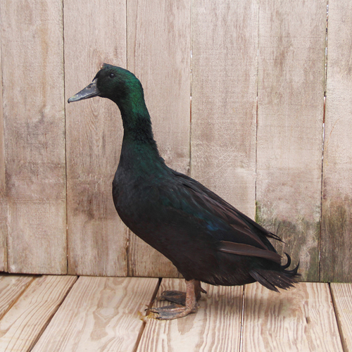 Cayuga Ducks have spectacular greenish black plumage, which makes the adults one of the most beautiful of all poultry displays. They are the most popular exhibition breed in the Medium Weight Duck Class. They have long been recognized as one of the hardiest of all domesticated ducks and are active rustlers and foragers.