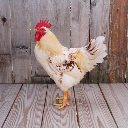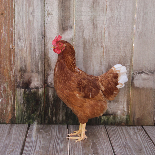 Gold Stars were developed in the 1950’s by crossing a Rhode Island Red male with a Rhode Island White female for efficient brown egg production and ease of sexing. Male Gold Stars chicks are light yellow without any red, while the females have varying amount of red down.