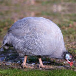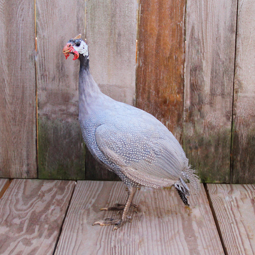Lavender Guineas are a relatively rare variety, which may have been the results of crossing Pearl Grays with White Africans. The entire plumage is very pale silvery gray with a lavender or lilac tint. They have spotting similar to Pearl Guineas with white dots in the usual manner, which have gray instead of black outer rings. Their skin is lighter than the skin of Pearl Guineas. Guineas, which are known as keets, are very active and easy to raise. After about 4 weeks of age, they require very little attention and will take care of themselves by hustling for their food. Some of the benefits of having a farm flock of guineas are as follows: very fine “watch dogs”, keep snakes away from the farm and consume grasshoppers, ticks (including those which carry Lyme Disease) and other insects.