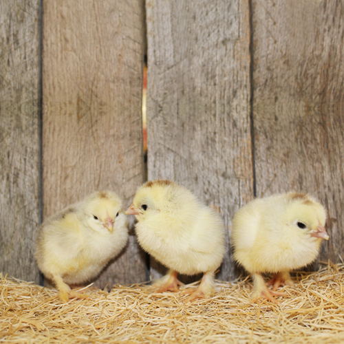 Brahmas originated in India from a cross between Malays and Cochins and were originally known as Chittagongs, Gray Shanghais and Brahma Pootras. Light Brahma chicks have gray backs with yellow heads, wing tips and chests. They have pea combs and feathered legs and toes.