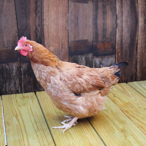Red Broilers were developed by introducing the red gene to a typical Cornish Rock Cross. Because both red and white plumage genes are recessive, the first generation of the cross produced offspring with some red, but predominantly white. As the following generations of this cross continued, the offspring became redder until only red offspring were produced. Red Broiler chicks are various shades of red.