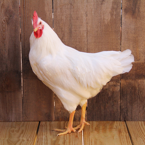 Rhode Island Whites were developed around 1900 from crosses that included Partridge Cochins, White Wyandottes and Rose Comb White Leghorns. They aren’t as well-known as Rhode Island Reds, but female Rhode Island Whites are used to produce the very popular Gold Star layers. Rhode Island White chick are solid yellow or cream with some having slightly darker heads. They have single combs and clean, yellow legs and feet. All the adult plumage is white, with the comb, wattles and ear lobes being bright red.