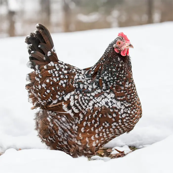 The Speckled Sussex is a friendly and striking breed, adored for its speckled plumage and curious nature. These hardy, low-maintenance birds excel at foraging and consistently lay large brown eggs, making them perfect for both eggs and meat.
